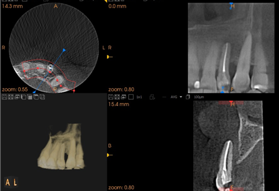 Após 8 meses da ROG, foi instalado um implante Cone Morse Due Cone 3,5 x 11mm através da técnica de cirurgia guiada por computador (Vídeo 2).