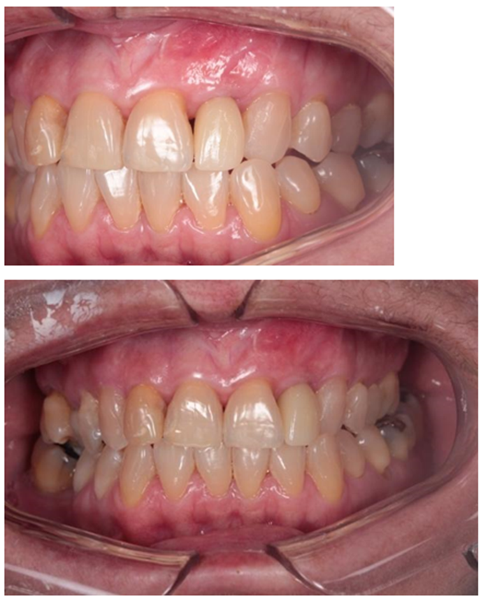 Portanto, ao se comparar o resultado obtido ao final do tratamento da paciente com a condição inicial (Figura 6), podemos sugerir que este tipo de abordagem terapêutica é capaz de devolver estética e função mastigatória para este perfil de condição clínica tão desafiadora.