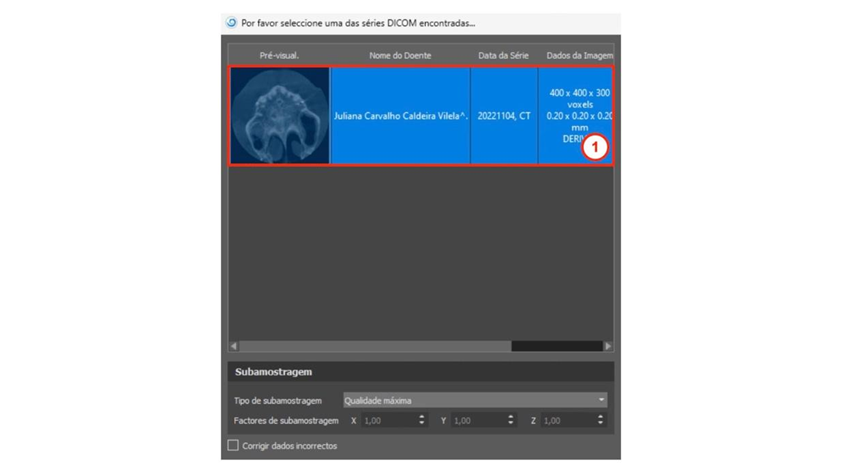 Uma lista das séries disponíveis que podem ser carregadas será exibida (1). Idealmente, cada série deve ser salva em uma pasta separada e apenas uma série será exibida.