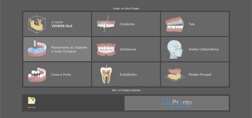 - Em tipo de planejamento selecione “Planejamento de Implantes e Guia Cirúrgico” e então “Importar CT Scan do paciente”;