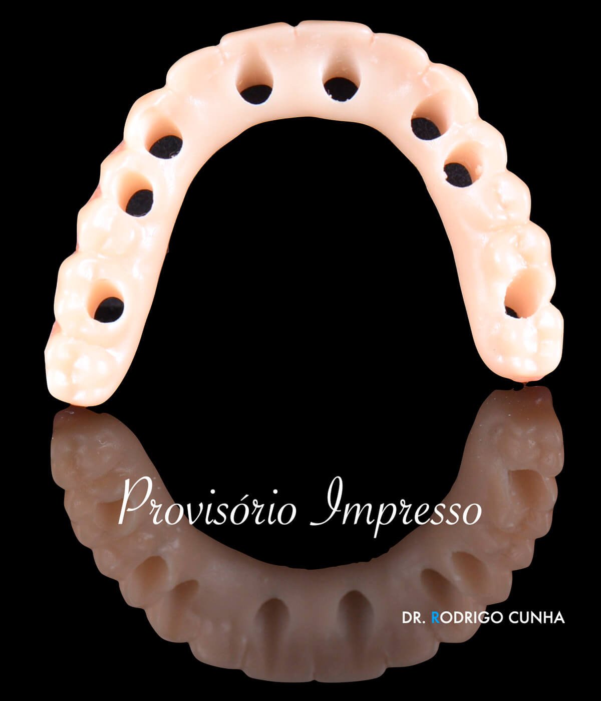 Neste caso demonstramos a produção de provisório de um protocolo impresso utilizando o DentalCAD (Exocad) para confecção através da informação do escaneamento intraoral e fotografia para termos uma prótese com todas as referências, minimizando o tempo clínico e alcançando um resultado o mais próximo do planejado.