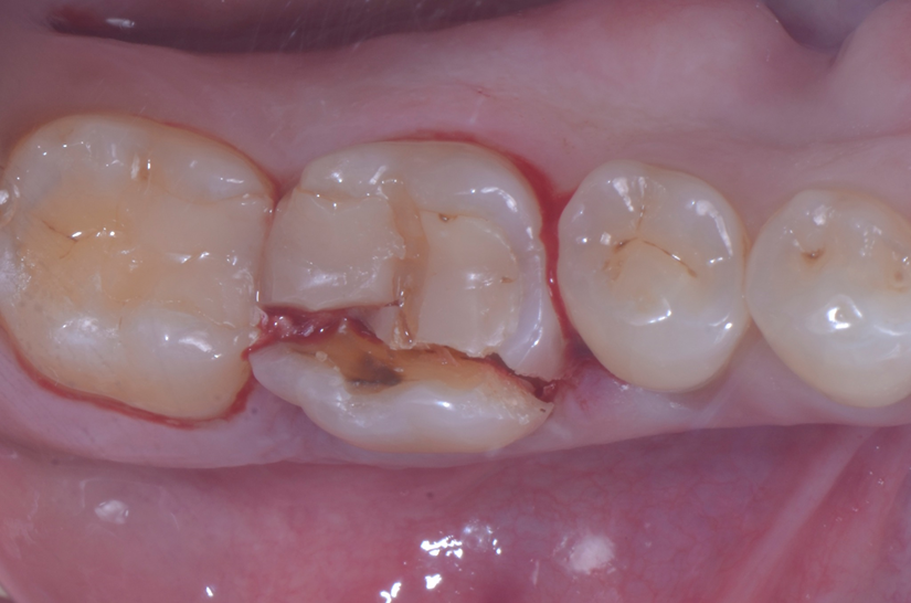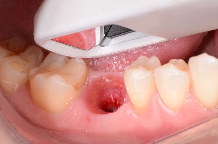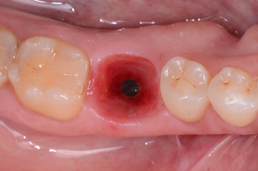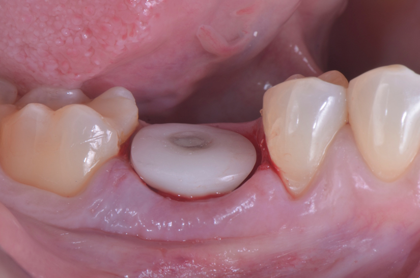 O paciente apresentou fratura vertical mésio-distal no elemento 46. Foi planejada a exodontia minimamente traumática e instalação imediata do implante Maestro Superiore (Implacil Osstem) utilizando uma guia prototipada. Após a exodontia, o implante foi instalado seguindo o protocolo de cirurgia guiada. O GAP vestibular foi preenchido com o Extra Graft. Um cicatrizador personalizado impresso com haletas facilitadoras foi capturado com resina flow e instalado. Após 30 dias, foi realizado escaneamento indireto para obtenção do perfil de emergência, utilizando protocolo digital com sobreposição do cicatrizador escaneado para confecção da coroa definitiva em zircônia policristalina estabilizada por ítria.