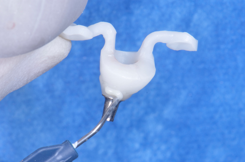 O uso de cicatrizadores personalizados, especialmente confeccionados por impressão 3D, tem ganhado destaque por permitir a conformação tecidual progressiva, facilitando a reprodução do perfil de emergência no fluxo digital6,7. A captura do cicatrizador com haletas de retenção com resina flow e seu posterior escaneamento são etapas críticas para assegurar a fidelidade da transferência do perfil de emergência e garantir um planejamento restaurador mais previsível8.