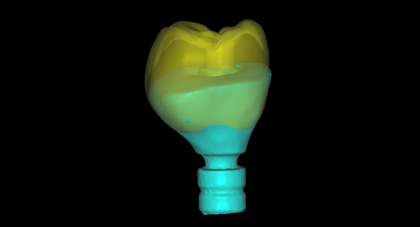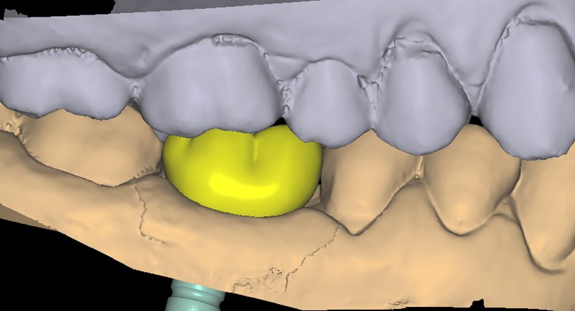 Neste caso, a sobreposição digital entre o cicatrizador escaneado e o desenho da coroa possibilitou comparar perfis de emergência com excelente adaptação clínica, contribuindo para um resultado estético e funcional adequado.