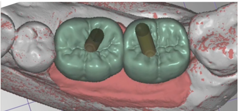 Na etapa de escaneamento foi selecionado o transferente digital do Mini Cônico e optamos por trabalhar no fluxo e biblioteca do software Exocad (onde é realizado o design da prótese), o qual tem toda a linha de componentes da Implacil De Bortoli e de seus análogos digitais.