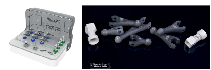 Destacamos neste artigo o Transfer Scan Multiple Cases, dispositivo de escaneamento para confecção de próteses parciais fixas. São peças precisamente encaixadas aos transferentes digitais dos pilares mini e micro-cônicos Implacil Osstem. Disponibilizados em três diferentes tamanhos (5, 10 e 15 mm), além do encaixe aos transferentes, permitem o encaixe entre si, aumentando sua área de alcance, conforme a necessidade. Facilitam a leitura pelos scanners intraorais, melhorando a veracidade e a precisão do escaneamento, tornando a impressão digital parcial ou de arco completo mais fácil e previsível.