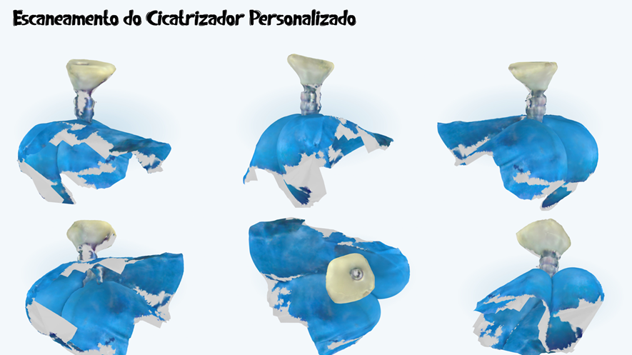 Após os dois escaneamentos intraorais serem feitos, foi realizado mais um escaneamento, desta vez com o intuito de copiar o cicatrizador personalizado completamente (Figura 9). Após este escaneamento, o cicatrizador foi reinstalado para aguardar a confecção da cerâmica definitiva.