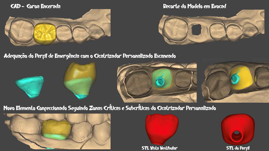 Para alcançar o sucesso estético/funcional durante as reabilitações com implantes, são necessários alguns fatores primordiais. Dentre eles, encontra-se a confecção do perfil de emergência, cuja definição é o contorno do tecido gengival peri-implantar. Tal perfil pode ser alcançado através de um dente provisório ou cicatrizador personalizado, em que é possível modelar as zonas críticas e subcríticas. Quando isso é bem realizado, leva a resultados estético/funcionais mais próximos de um dente natural (QUESADA, Gustavo Adolfo Terra et al. 2014; Gomez-Meda, Ramon et al 2021).