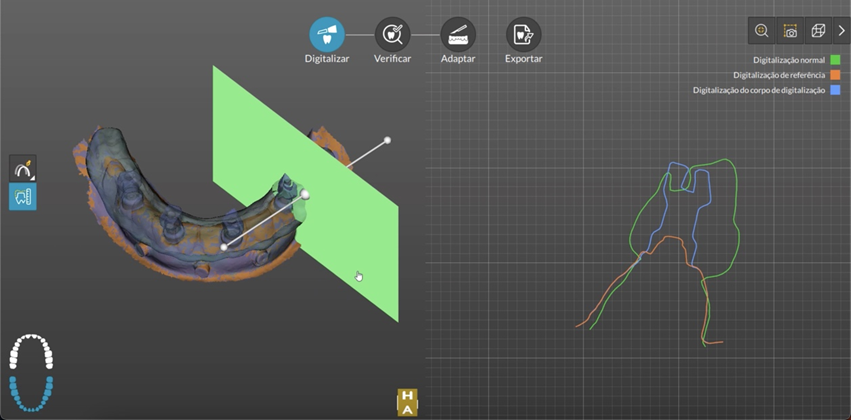 A verificação de preparação (Figura 8)permite fazer medições no modelo digital e verificar o alinhamento das digitalizações.