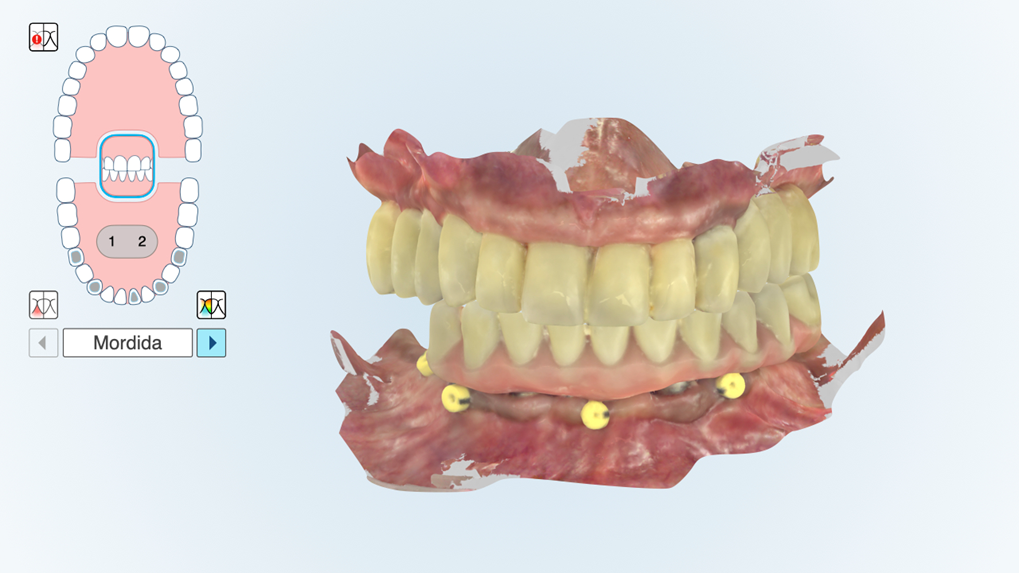 O escaneamento digital para confecção de próteses tipo protocolo continua sendo um desafio. Mesmo sendo possível obter dados muito precisos dos escaneamentos, a digitalização de referências relevantes para o paciente, como a dimensão vertical de oclusão, posição dos dentes, plano oclusal e relação interoclusal sempre demandavam o uso de modelos físicos. Uma das etapas mais sensíveis à técnica é o registro oclusal e a sobreposição dos arquivos digitais, devido à ausência de pontos de referência fixos.