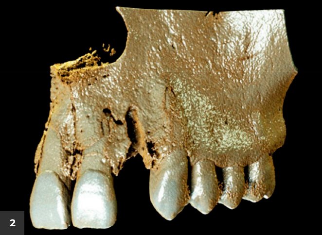 Figura 2 – Exame tomográfico evidenciando a perda de parte da tábua óssea vestibular deste dente e uma situação bastante desafiadora para a colocação de implante osseointegrável.