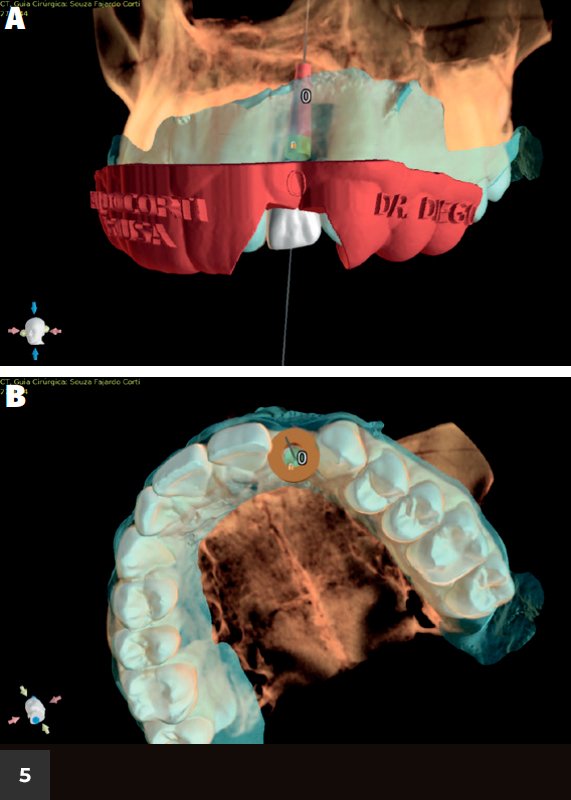 O guia cirúrgico estático, confeccionado e planejado virtualmente com base no escaneamento intraoral e na tomografia computadorizada, não permite alteração transoperatória do posicionamento do implante. O sistema dinâmico, por sua vez, emprega a navegação cirúrgica a partir de dados tomográficos, reproduzindo a posição virtual do implante, mediante tecnologia de rastreamento de movimento, em tempo real. Este último permite alterações transoperatórias de fresagem óssea e posição do implante.