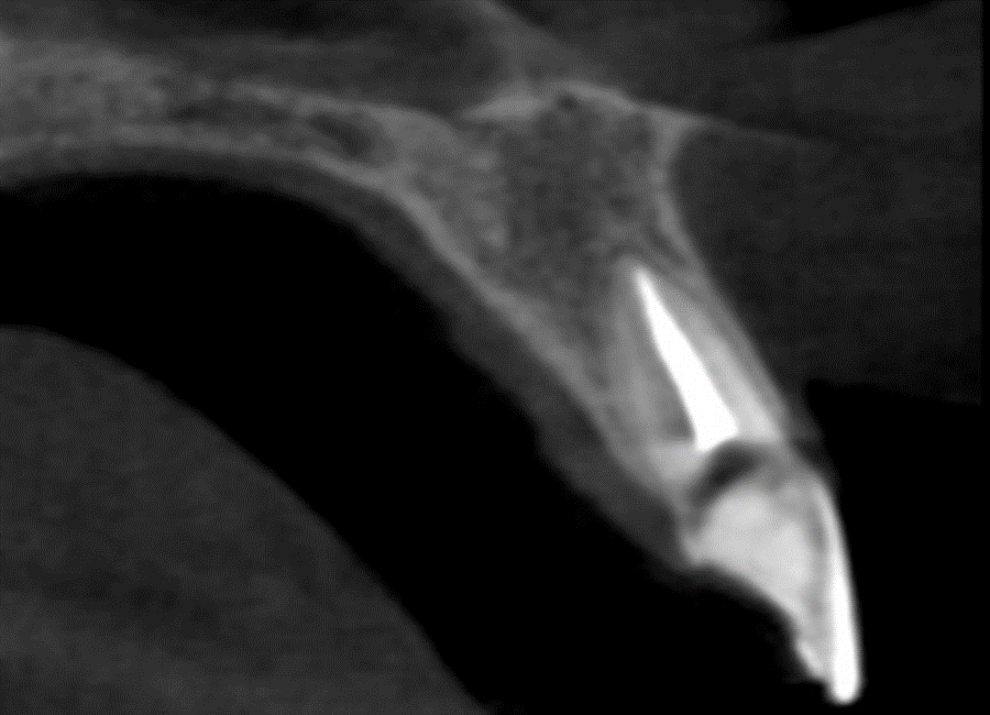 A intervenção cirúrgica teve início com a exodontia atraumática do dente 21. Inicialmente foi realizada uma coronectomia, seguida da remoção cuidadosa do fragmento radicular, com a preservação integral das tábuas ósseas.