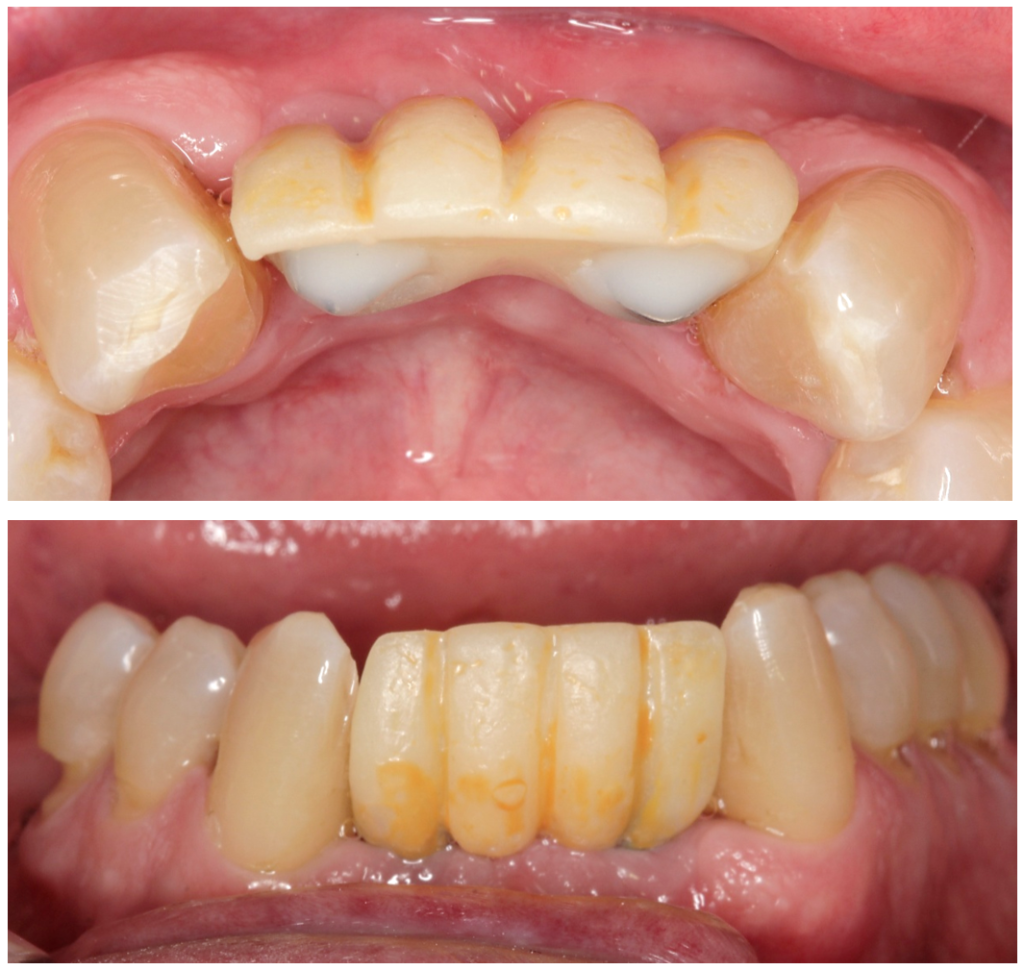 Um paciente procurou tratamento protético reabilitador com queixa dos dentes 31 e 41 que estavam abalados. Ao exame clínico e radiográfico, notou-se mobilidade dos dentes, doença periodontal ativa e perda óssea.