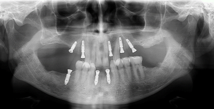 Figura 11 – Aspecto radiográfico final da instalação dos implantes Veloce de 3.3.