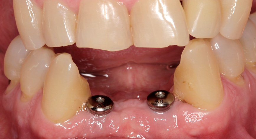 Figura 6 – Aspecto clínico dos implantes Veloce instalados e já com os cicatrizadores.