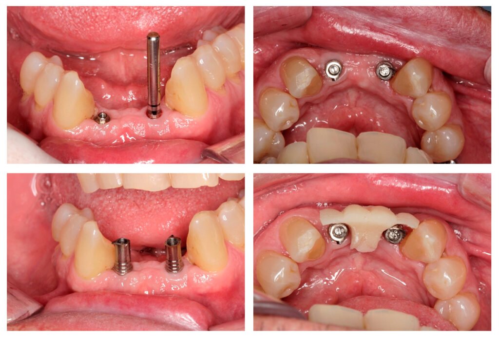 Figura 7 – Aspecto clínico da seleção do pilar micro-cônico e da confecção do provisório unido sobre os cilindros de metal instalados sobre os micro-cônicos.