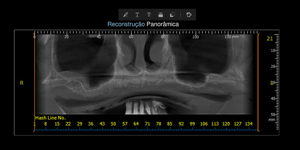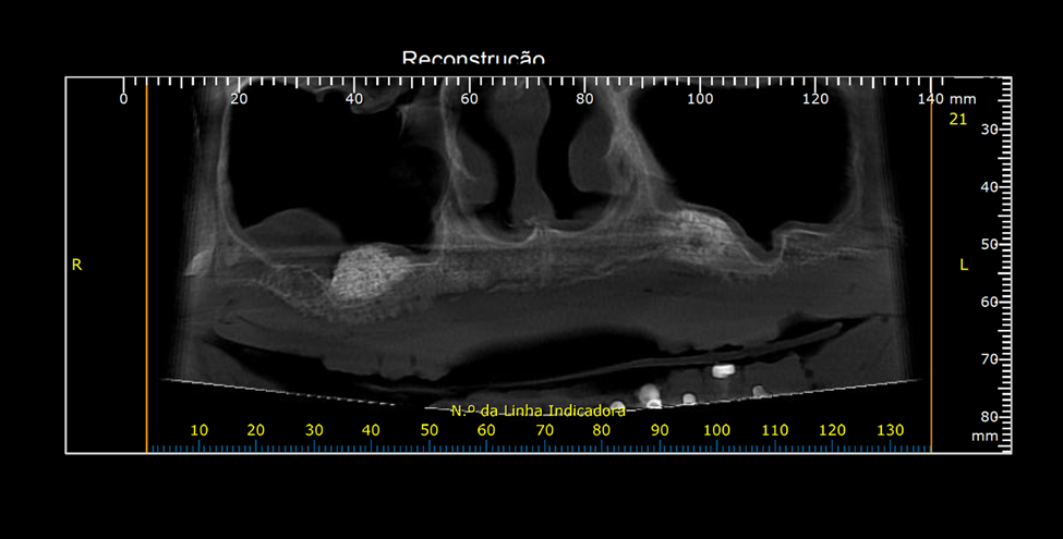 Foto 2 – Corte panorâmico da tomografia obtida após a cirurgia reconstrutiva.