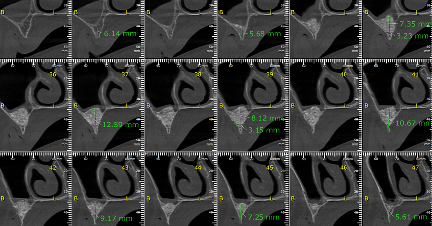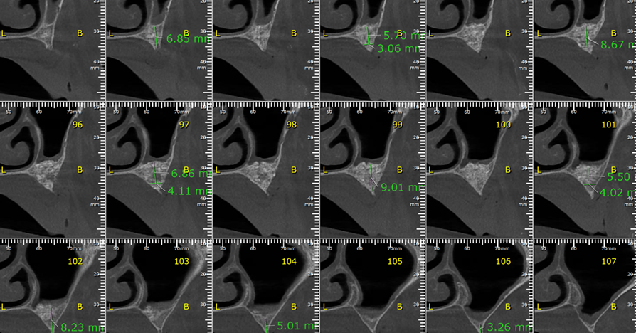 Foto 4 – Cortes transversais do lado esquerdo, evidenciando o ganho ósseo obtido.