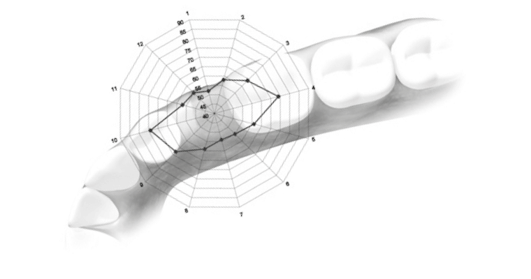 Às vezes, o osso varia ao redor do implante, ou mesmo a preparação do próprio leito do implante pode fazer com que a medição não seja obtida em alguma direção. Isto pode ocorrer com mais frequência em ossos muito porosos e vascularizados.
