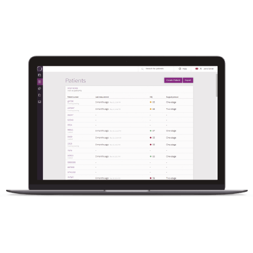 O modelo de registo de pacientes permite que indique dados como o número do histórico médico do paciente, ou “fatores” que podem afetar o resultado do tratamento. Na lista de registo de pacientes, terá acesso aos dados de todas as medições feitas com o seu dispositivo OSSTELL.