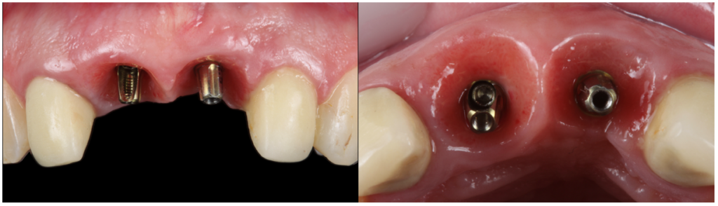 Após 45 dias, observou-se adequada cicatrização dos tecidos moles e manutenção do volume peri-implantar (Figura 2).