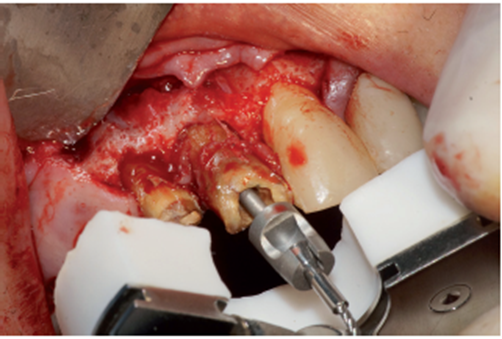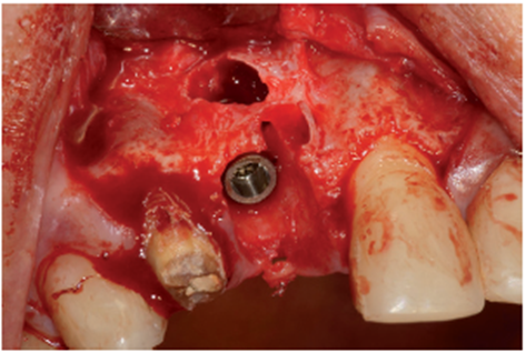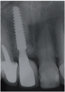 No presente caso clínico, existia perda óssea causada pela lesão apical. A implantação imediata com o posicionamento adequado aproveitando a maior quantidade de remanescente ósseo foi realizada associada ao enxerto com biomaterial de origem bovina e membrana de PTFE-d. A escolha pela reabilitação com coroa protética parafusada só foi possível devido a utilização do pilar angulado da linha Ideale de 30 graus.