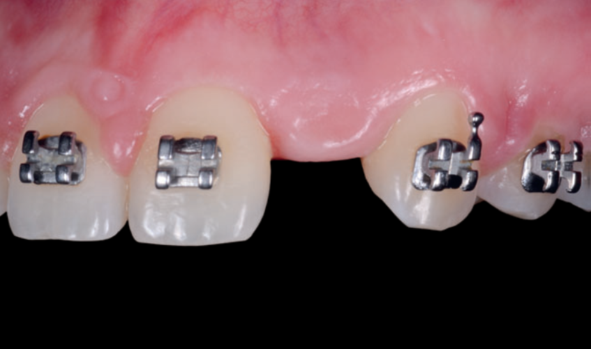 O titânio anodizado dourado oferece uma bela resposta estética, superior a outras cores, produzindo resultados semelhantes aos dentes naturais quando empregado em conjunto com coroas de zircônia. Não há consenso, nem evidências suficientes, em relação à quantidade necessária de tecido mole vestibular para obtermos sucesso funcional e biológico a longo prazo. Todavia, do ponto de vista estético, espessuras da mucosa peri-implantar vestibular superiores a 2 mm irão mascarar os efeitos indesejáveis de componentes protéticos metálicos.