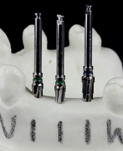 Na sequência cirúrgica do implante selecionado de acordo com a tomografia e/ou radiografia periapical, seguir com as etapas de fresagem e instalação dos implantes previamente planejados.