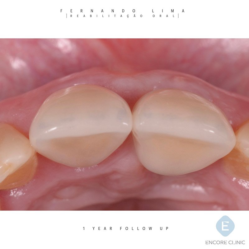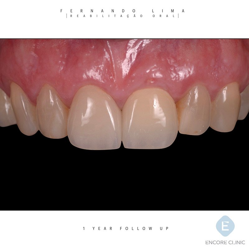 Após um ano de acompanhamento, podemos observar a estabilidade dimensional das margens gengivais, ausência de inflamação e preservação das cristas ósseas interproximais.