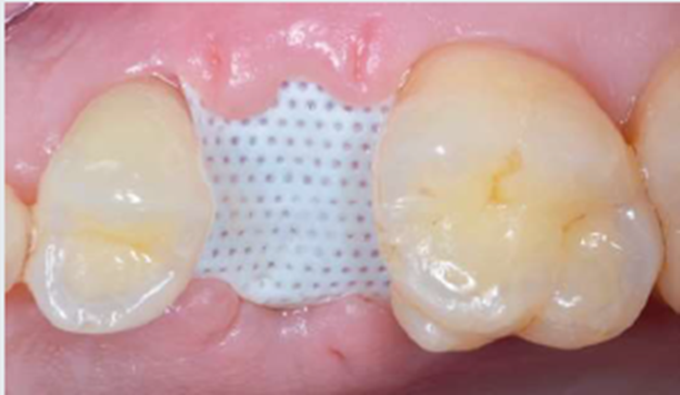 A capacidade de permanecer intencionalmente exposta é uma vantagem importante desse material, por reduzir a necessidade de grandes retalhos e incisões verticais para alcançar o fechamento primário, mantendo os contornos originais do rebordo e a linha mucogengival em posição, evitando a perda de mucosa queratinizada. O uso de membranas isoladas ou associadas a enxertos ósseos (autógeno, alógeno, xenógeno ou aloplástico) proporciona a manutenção do rebordo alveolar.