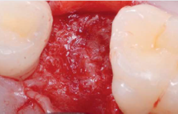 Nos locais que recebem membranas isoladamente, os implantes são colocados após três meses. Em associação com enxertos ósseos, a espera passa para seis a oito meses. No momento da colocação do implante, observa-se a mucosa queratinizada com superfície, cor, consistência e textura normais, além da posição da junção mucogengival preservada e o rebordo com formação de tecido ósseo adequado.