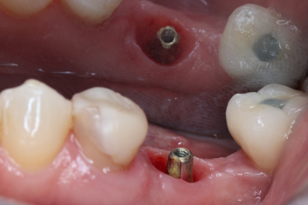 A cirurgia foi realizada com fresagem a 600 RPM e fresagem convencional utilizando como fresa final a fresa do diâmetro do implante, devido a necessidade de ativação desse implante de forma precoce, seguindo assim o protocolo recomendado pelo fabricante. O torque no momento da instalação do implante foi de 25 Ncm, permitindo assim, um maior aproveitamento das câmaras de cicatrização. Na própria etapa cirúrgica foi realizada a instalação do pilar Ideale 3.3 X 4 X 1.5 apenas com força digital e foi realizado a confecção de um cicatrizador personalizado.