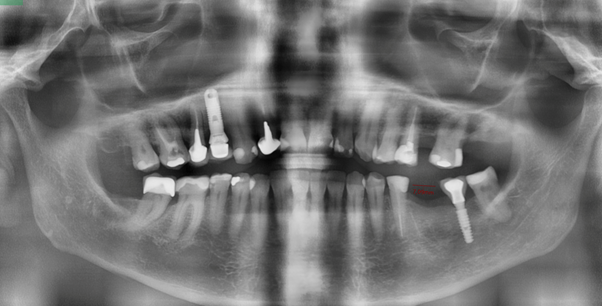 Paciente do sexo feminino, 61 anos, chegou ao consultório com ausência do dente 36, porém com boa quantidade e qualidade (7.1 mm de diâmetro e 17.9 mm de altura) de remanescente ósseo. A mesma reside no Canadá e retornaria ao país de origem após 30 dias. Devido ao pouco tempo disponível, optou-se pela utilização do Implante Maestro Cone Morse, que permite uma reabilitação protética final precoce.