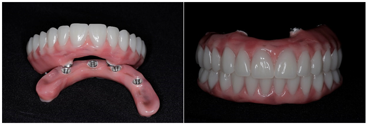 Paciente procurou tratamento protético reabilitador com queixa de dentes abalados e com mobilidade, mau hálito e sangramento gengival. Após exame clínico, radiográfico e tomográfico constatou-se a necessidade de exodontia de todos os dentes remanescente e instalação de implantes na maxila e mandíbula para posterior confecção de duas próteses do tipo Protocolo de Brånemark – prótese total fixa implantossuportada sobre implantes Maestro CM da Implacil De Bortoli, pilares do tipo mini-cônicos, barra metálica e prótese de resina acrílica, cuja abordagem encontra-se no dia a dia dos consultórios dentários.